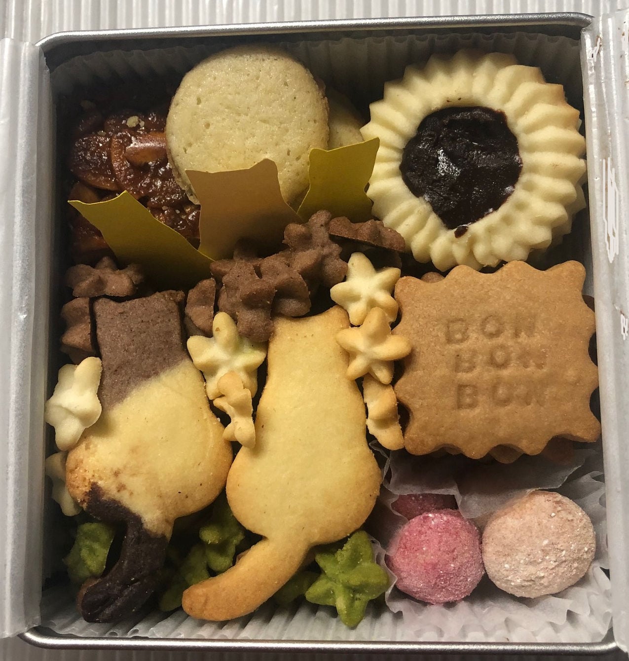 猫型クッキーを中心に色々なクッキーの詰め合わせ缶です。