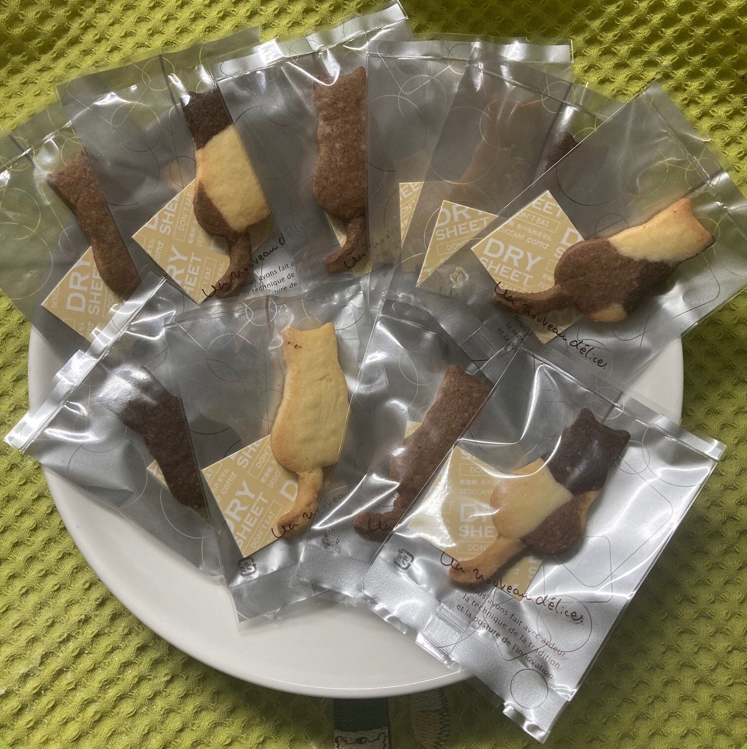 クッキー缶に入っている猫型クッキーを、個別包装をしたものです。