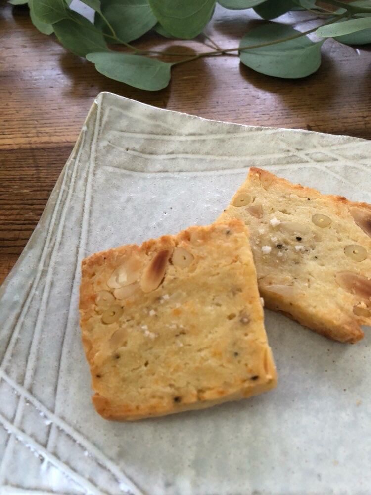 エダムチーズとアーモンドと松の実を練りこんだ、塩味のクッキーです。